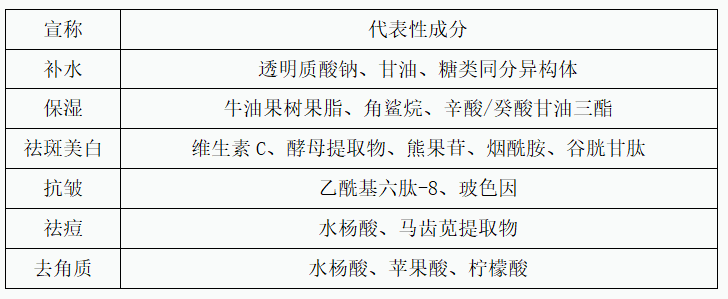 五、主要宣称及功效性成分