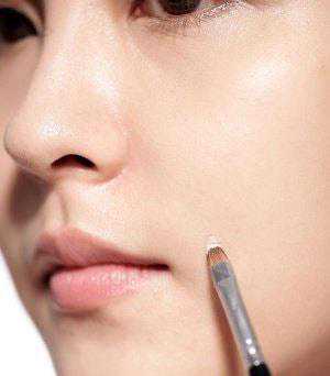 如果你更追求精致干净,可以选择一款颜色和肤色一样的遮瑕棒或者遮瑕液。然后用遮瑕笔蘸取一点,以点状的方式点在痘痘和斑点处以及黑眼圈的位置。