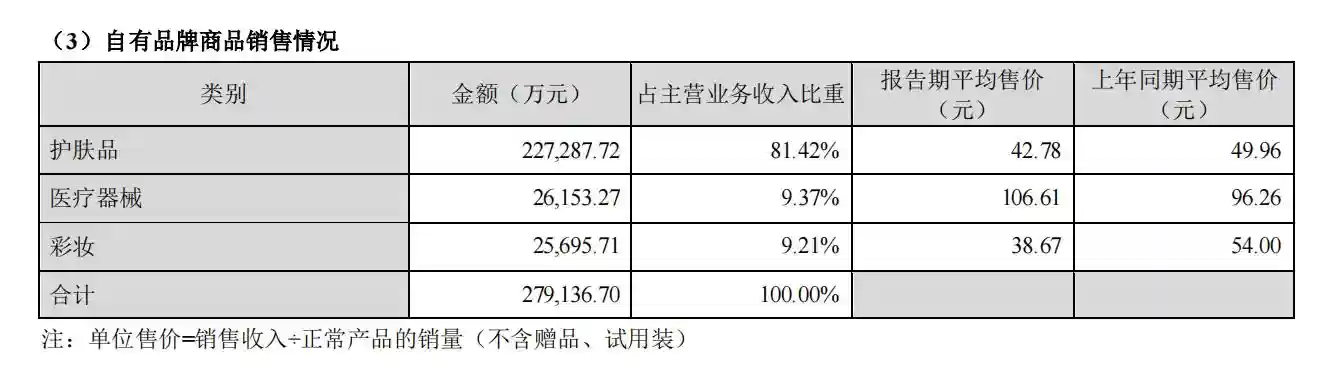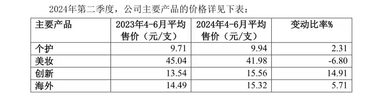 记者梳理财报发现,贝泰妮和上海家化在财报中披露了产品价格数据的变动。其中,贝泰妮护肤品上半年平均售价降至42.78元,同比下降14.37%;彩妆品上半年平均售价降至38.67元,同比下降28.39%。上海家化方面,美妆产品单价为所有品类中唯一下跌的一类,二季度同比下降6.8%至41.98元。