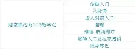 芭杆塑形/纤体瑜伽/哈达瑜伽/开肩美背/燃脂尊巴/有氧操/燃脂踏板/南美热舞/尤克里里/花艺/钩针编织/船模/油画/吉他/创意设计画/彩铅/JAZZ舞/古典舞/汉服舞/民族舞/流行音乐合唱/hiphop/芭蕾形体/网红抖音舞蹈/古典舞/朗诵与主持/水粉画