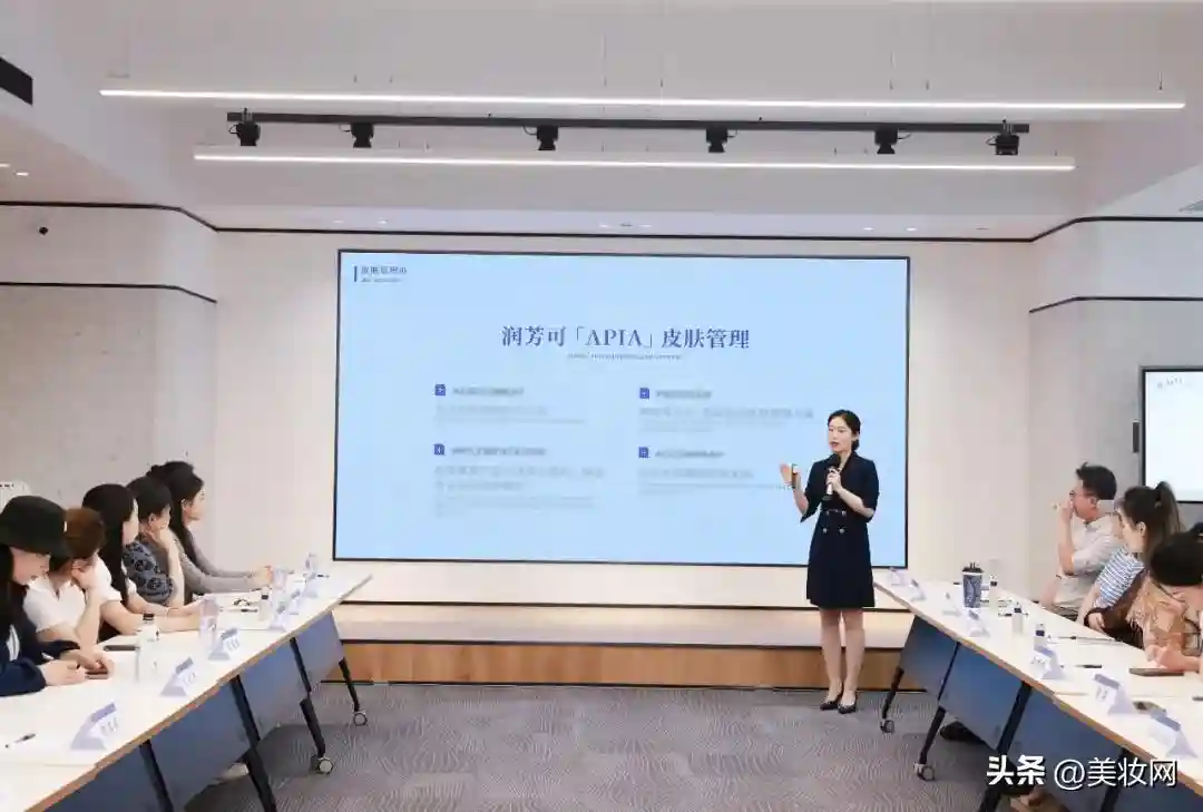 本次研讨会主要就皮肤管理定义与皮肤管理师新职业进行解读和说明。会议开展前,中国美发美容协会美容护肤专业委员会执行主任、润芳可皮肤管理师周婷婷带领嘉宾进行企业参观,特别介绍并现场进行了润芳可APIA皮肤管理体系展示,引起了行业专家们的热烈讨论与咨询。
